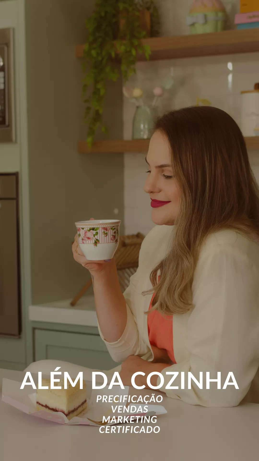 "Pois minha missão é ajudar mulheres a viverem da confeitaria produzindo bolos na cozinha da sua casa, a terem sua independência financeira, ter sua liberdade de tempo e estar mais perto da família."